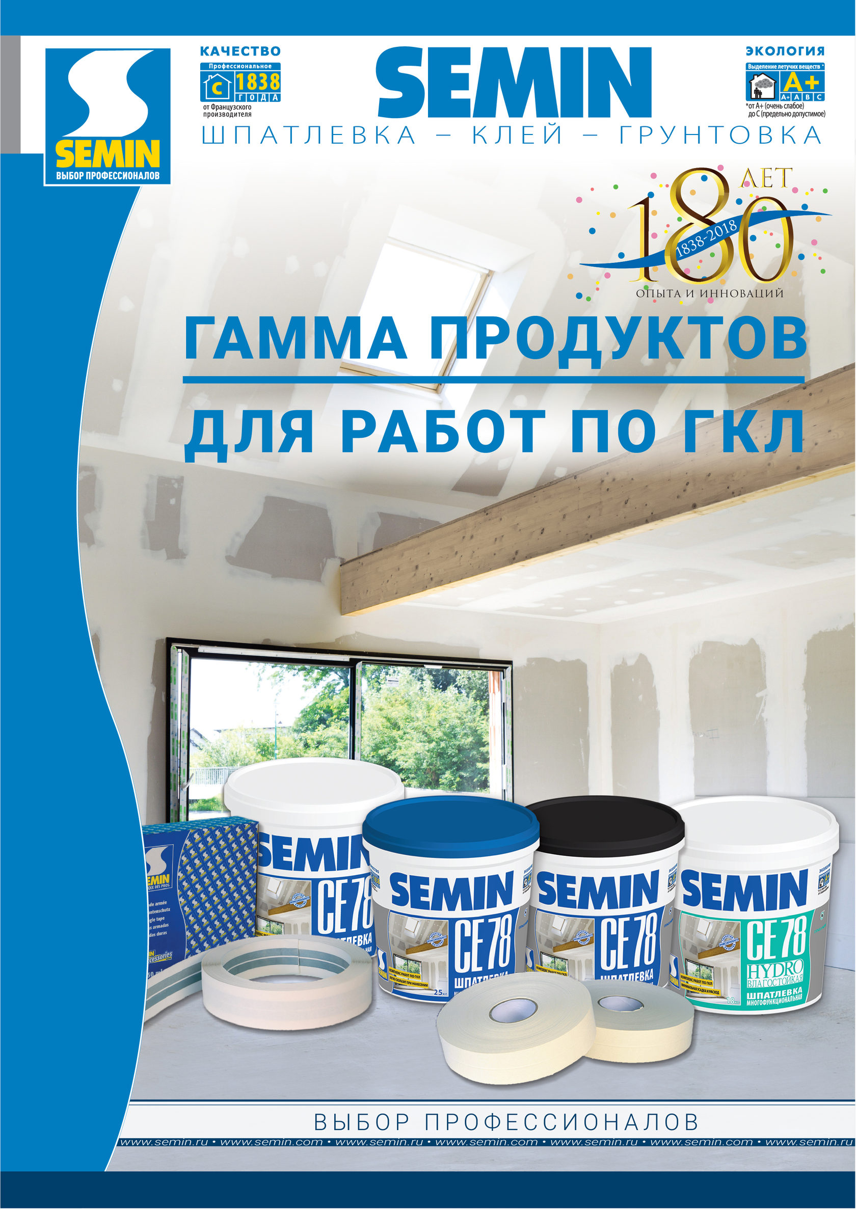 Скачать каталог, буклет Семин (SEMIN) для того, чтобы читать, изучать. Буклет Семин содержит описание: шпатлевка, клей для обоев, грунтовка Семин.
